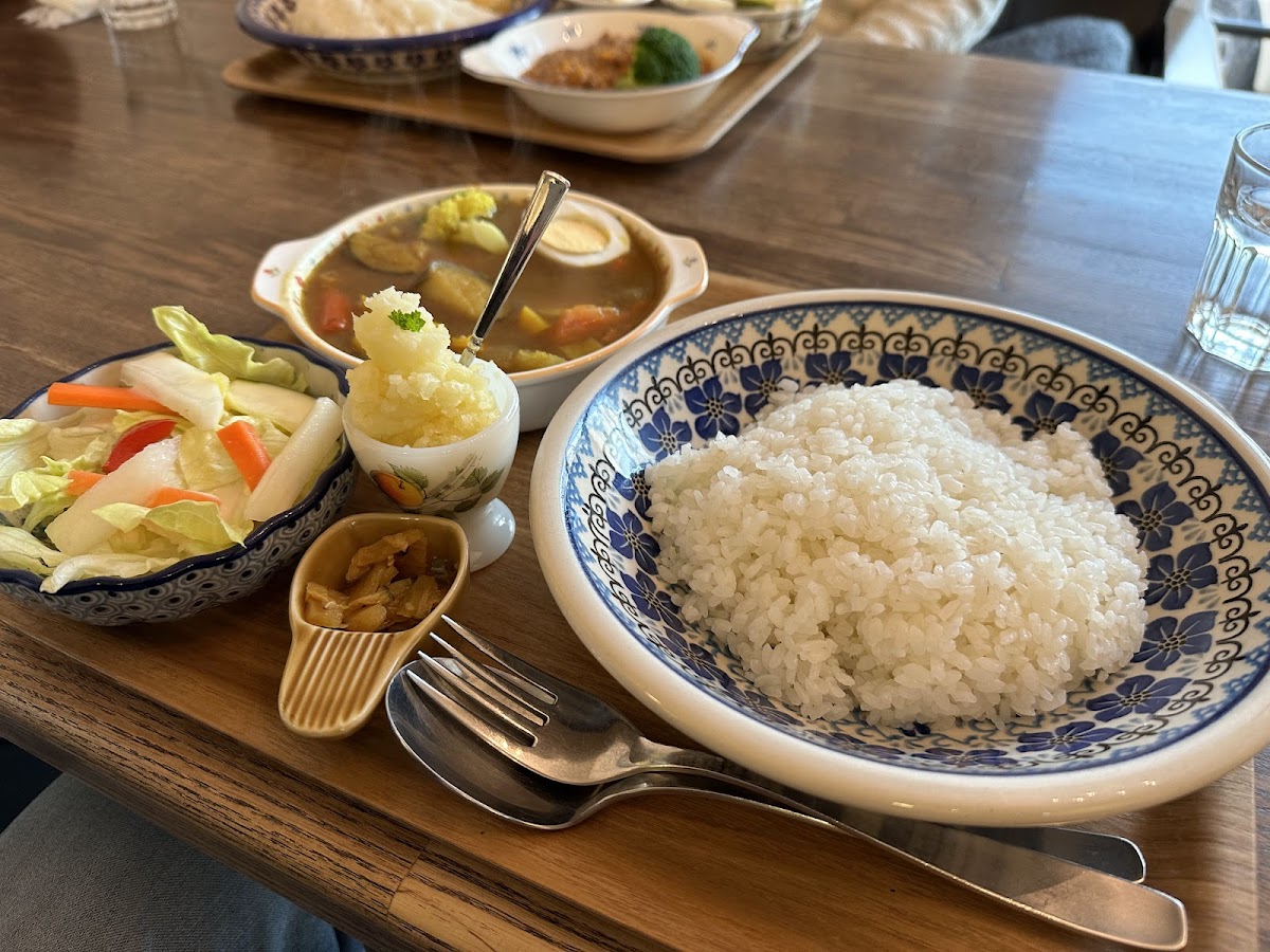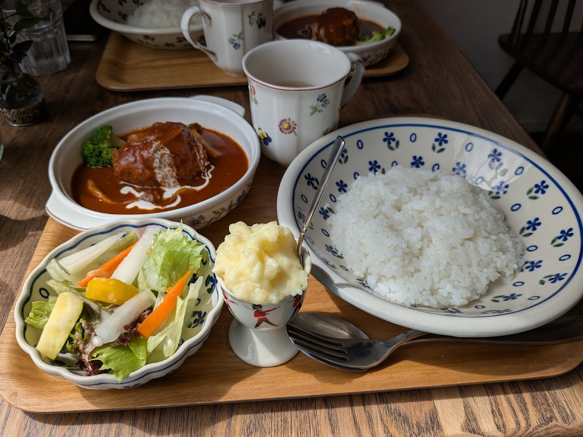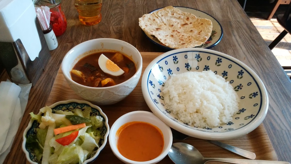 This café specializes in a delectable selection of dishes that showcase the rich flavours of authentic Indian-style curry, alongside delightful lunch options. The standout dish, the Keema Curry Set, tantalizes your palate with its aromatic spices and rich textures. Priced at just JP¥1,500, this set includes succulent keema curry served with fluffy rice, a heavenly soufflé omelet, creamy mashed potatoes, a fresh salad, and a delightful dessert of fruity pudding. With options for varying spice levels—mild, medium, or hot—there's something for everyone to enjoy!